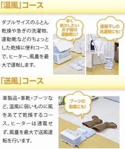 ZOJIRUSHI RF-AA20-AAはこんな使い方もできる! RF-AA20-AA の使い方 2014年12月05日 0 RF-AA20-AAはふとんを乾燥させるだけではないんです! 吹き出し口の角度を自由にセットできるので、ふとん以外のちょっとした乾燥にも便利♪ 温風コースでは、ダブルサイズのふとん乾燥や急ぎの洗濯物や運動靴などちょっとした乾燥が出来ます。 そして、 送風コースでは革製品、革靴、ブーツなど、温風に弱いものに風をあてて乾燥する事が出来ますよ。 梅雨の時期や洗濯物が乾きにくい時に温風コースを使うと早めに乾いていいですね♪ そして冬場はブーツをよく穿きますが、ブーツて蒸れやすいくて匂いが心配>< そんな時も使えて、1台で3つの事が出来るRF-AA20-AAは大活躍しそうです。 ZOJIRUSHI RF-AA20-AAの詳細はこちら